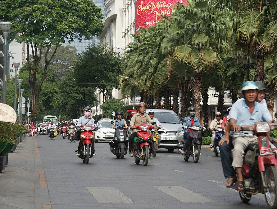 Der er mange knallerter og de kan virkeligt godt lide båthornet og speederen. De kører bare over for rødt. Når man går over gaden skal man bare blive ved med at gå og ikke stoppe så kører de bare uden om en.