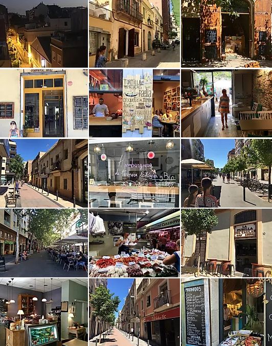 Gennem hele byen er flere lange gågader og masser af små spændende butikker at gå på opdagelse i. Derudover er der et hav af økobutikker med både frugt, grønt og helsekost. Så alt i alt er vi vist nok landet på Barcelonas Østerbro. Og det klager vi ikke over. Bydelen får 5 stjerner herfra – den har alt hvad hjertet begærer og man kunne nemt få en lille uge til at gå her uden at skulle helt ind til centrum, meeeen når nu vi er her, ville det da være dumt ikke lige at smutte derind i ny og næ:-)