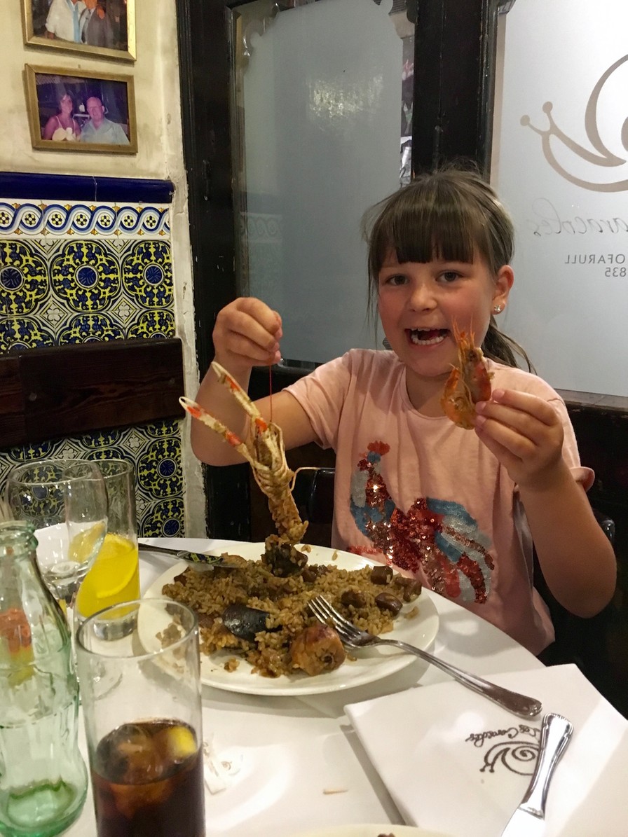 I får også lige Selma i krig med en jomfruhummer i seafood paellaen på den klassiske restaurant Los Caracoles, der ligger nær Ramblaen.