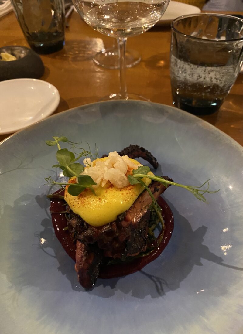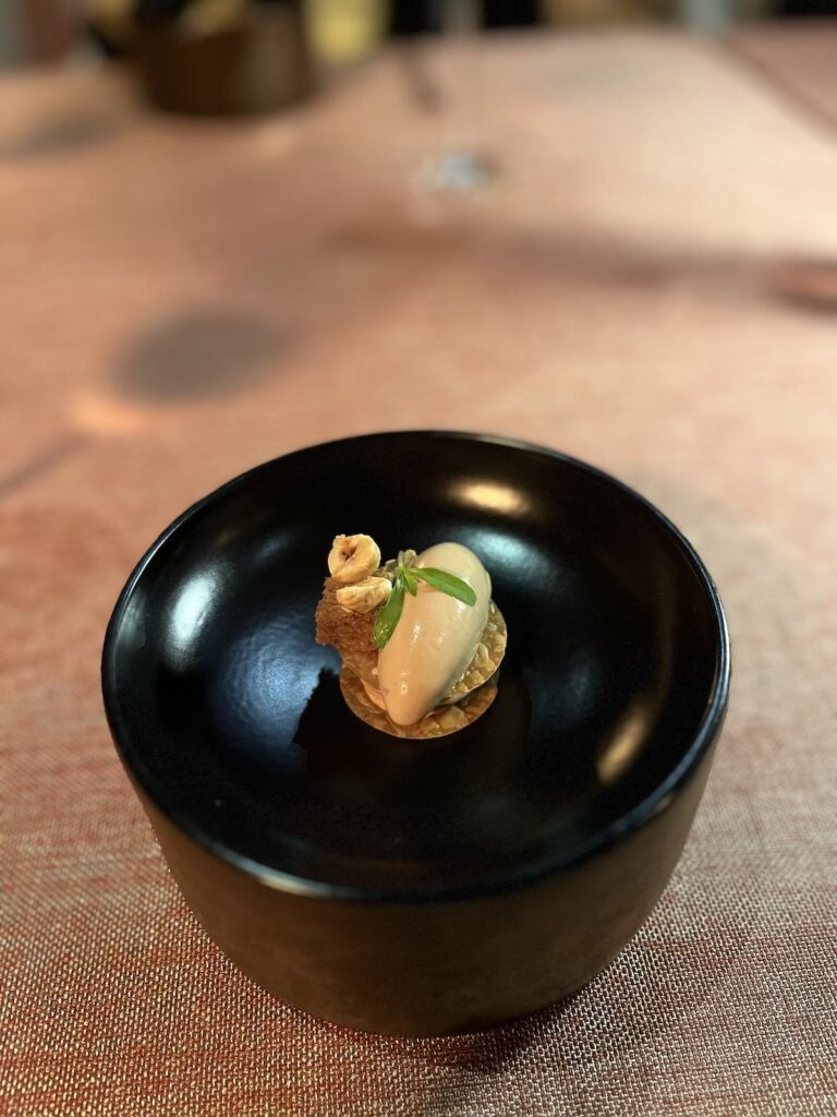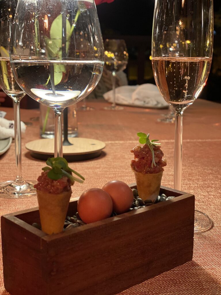 Vi fik den største tasting menu – 16 retter – ca. 1100 kr./person. Dertil vin.