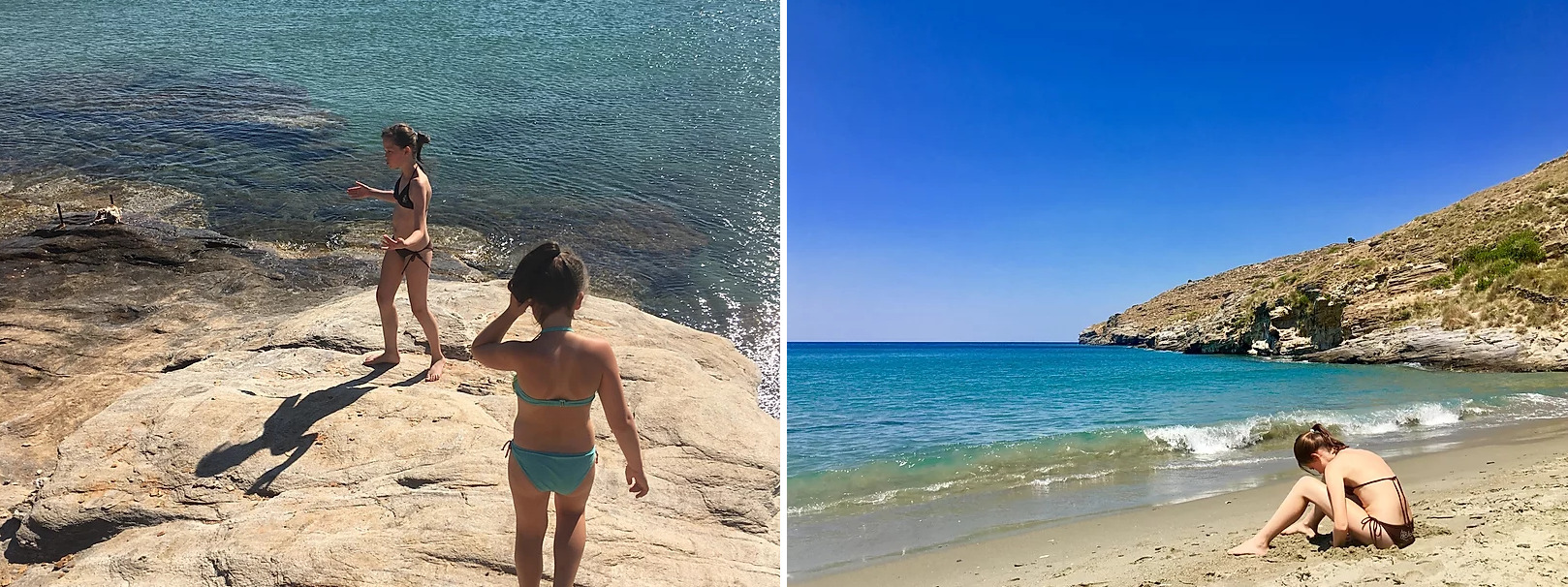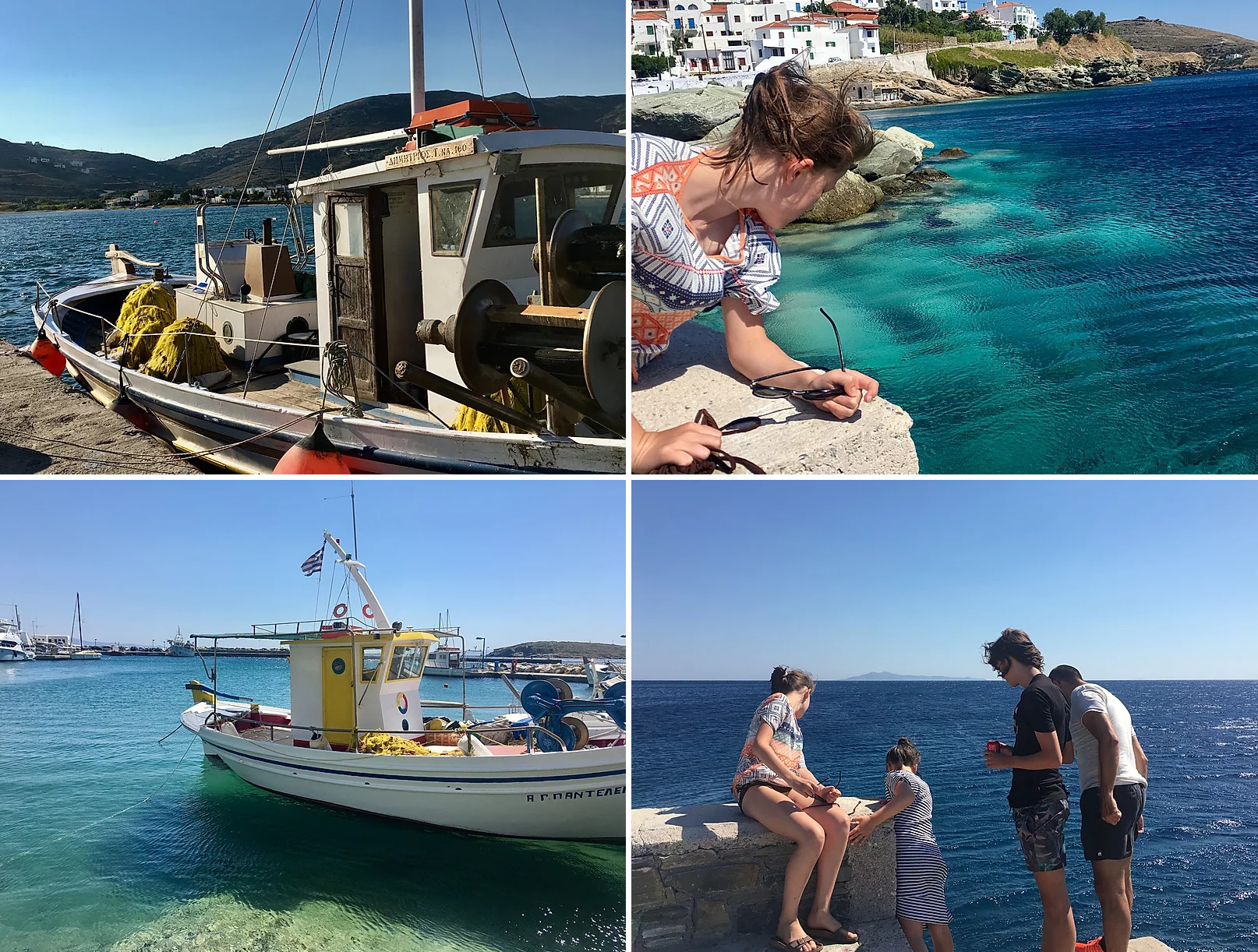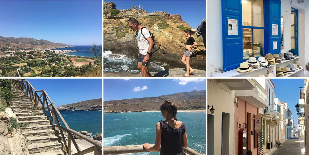 En uge er gået og den har budt på alt fra stroppeture på Akropolis til afslapning i solsenge ved både pool og på strand her på Andros. Oplevelser har det ikke skortet på, og det føles som om, vi allerede har været længe afsted. Det med at flytte sig fra sted til sted er virkelig noget, vi holder af, når vi er på ferie. Hvor andre måske ville føle det stressende, passer det virkelig godt til vores rejsetemperament.