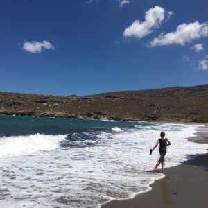 De sidste par dage har vi haft bil og dermed mulighed for at komme ud og opleve øen. Efter et par dages afslapning, hvor eneste adspredelse fra solseng og badeture har været en gåtur i ny og næ, var vi alle klar på, at komme lidt ud på “opleveren” igen. Med kort over øen og et par anbefalinger fra vores vært, kørte vi tværs over øen til byen Batsi, som er en lille by på østsiden af øen. Her er primært en masse cafeer og tavernaer, foruden en lille lystbådehavn. Her nappede vi lidt mad og en badetur, inden turen gik lidt længere nordpå til havnebyen Gavrio, hvor vi gik en lille tur inden Jørgen fik overtalt resten af holdet til at spise pizza. Selma og jeg nægter at indtage andet end græsk mad, så vi fik som altid en god græsk salat og souvlaki. Gavrio er iøvrigt øens havneby, og herfra de store færger forbinder øen til primært Tinos, Mykonos og Athen.