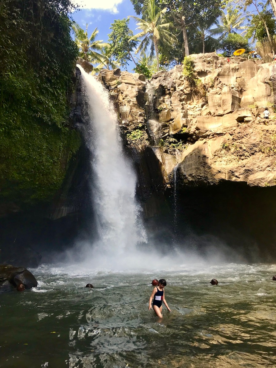 Dagen før vi skulle videre fra Canggu sendte han en liste med forslag til steder, vi kunne besøge på vejen og efter lidt research af hans forslag, faldt valget på Tegenungan vandfaldet, det hellige vandtempel Tirta Empul og en kaffeplantage.