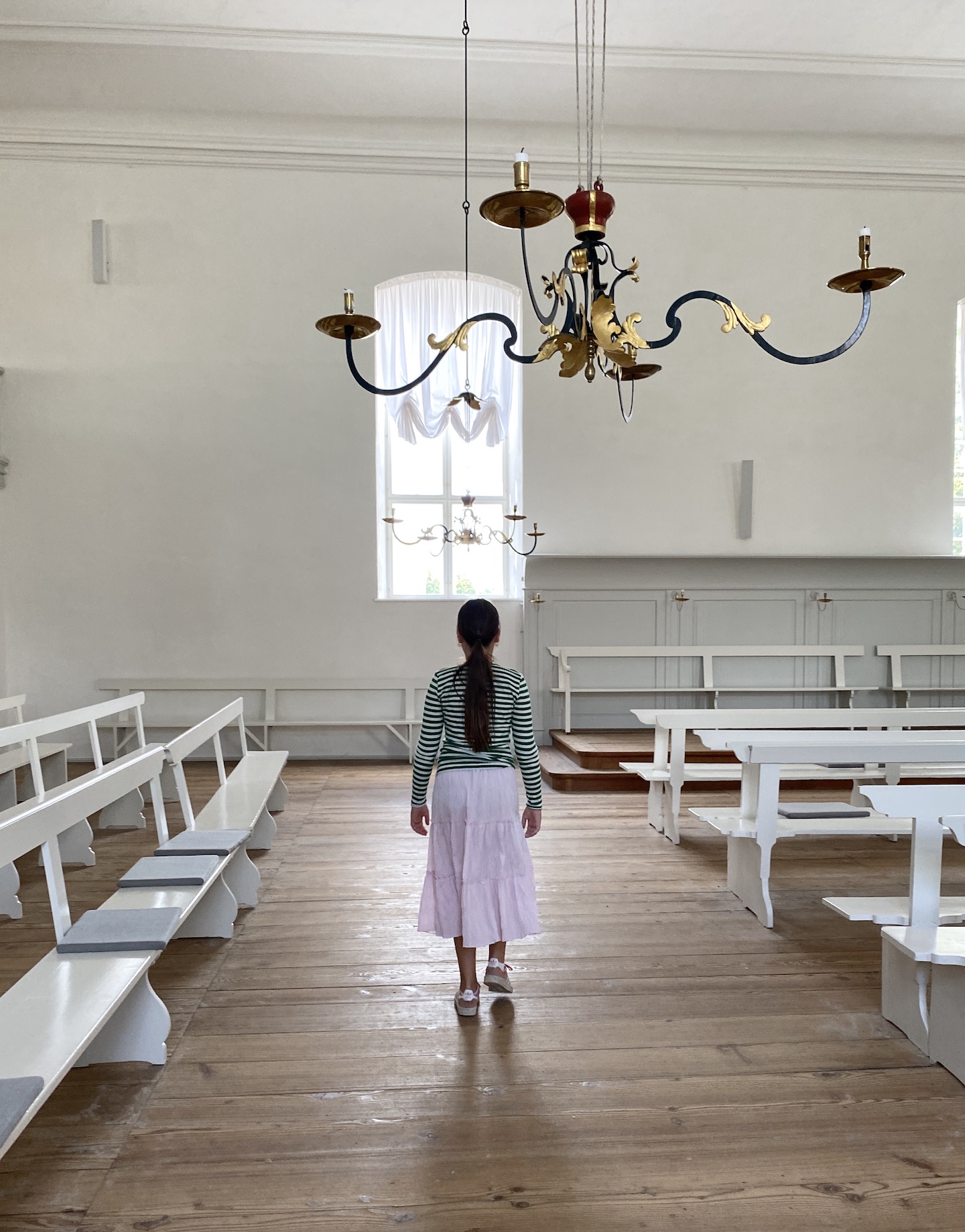 Kirkesalen er opført under Christian den 8. i 1777 og kan rumme 1000 gæster.