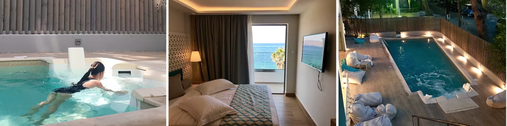 En af de helt store wins ved Kos er, at man kan tage sig rundt til stort set alt på gåben eller cykel. Det er måske noget af det, jeg elsker allermest ved denne ø, og da vi så tilmed er tjekket ind på det spritnyrenoverede Hotel Triton (hvor vi har fået en seriøst god deal, fordi jeg fandt ud af, at jeg kendte receptionisten) var lykken gjort. Vi er i Kos-himlen og nyder det BIG TIME. Hotellet er renoveret efter jordskælvet for 2 år siden (så trist historie, som har sat spor her, men de seje grækere er allerede godt på vej videre), og alt er bare SÅ lækkert. Selma nyder poolen med indbyggede spa-stole, når vi napper en dukker efter den dag i cykelsadlen og på stranden. Se lige hvor fint her er. Det kan virkelig anbefales. Det ligger helt perfekt og er toplækkert.