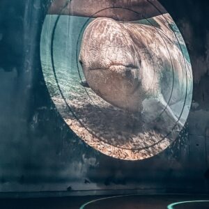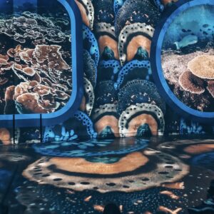 Vi havde ikke købt billetter på forhånd, men kom hurtigt ind. Pris 18 Euro pr. person. Showet løber over ca. 1 time og temaet skifter løbende. Vi så udstillingen Oceans, som løber frem til januar 24.