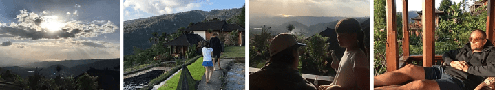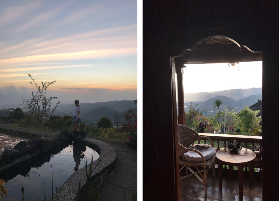 Vel ankommet til Munduk var himlen blevet blå og efter indtjekning på hotellet, var det bare at lade sig bjergtage af den vildeste natur. Vi bor i fine hytter midt i risterasser og med udsigt til bjergene på Java. Og med dagens solnedgang på nethinden, så kan man vist ikke ønske sig ret meget mere.