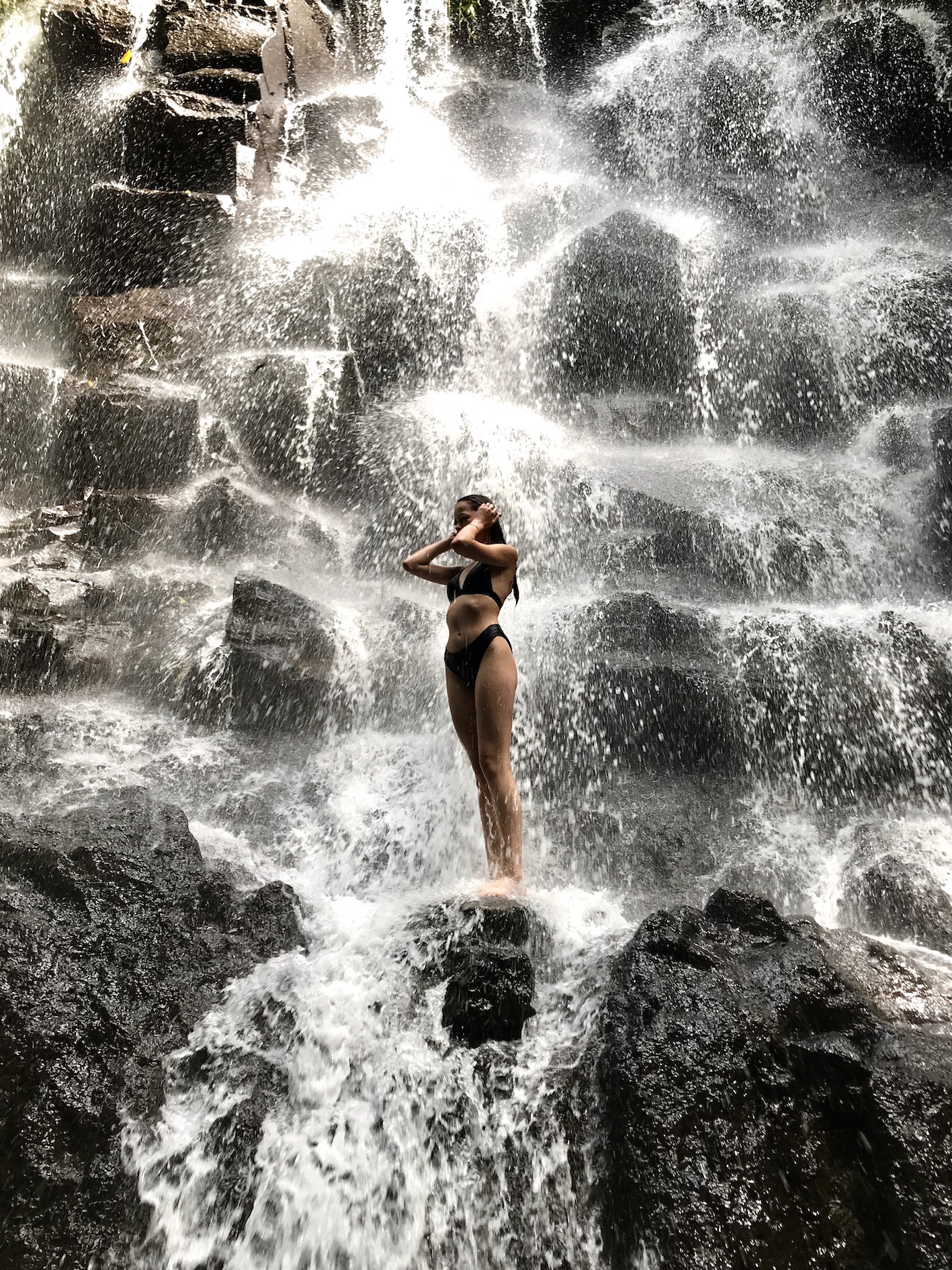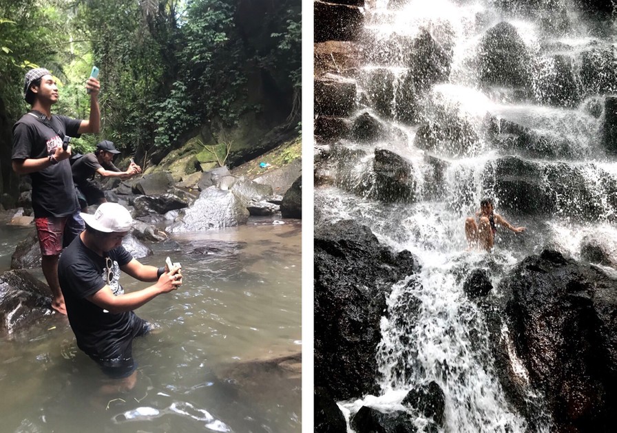 Vandfaldet er virkelig smukt, og ser man bort fra alle fotograferne (booket af folk der er på Instagramfoto tur), der guider og instruerer folk i diverse poses (vi kunne ikke dy os for lige at forevige dem på et billede – se nedenfor…..), så er det en rigtig fin oplevelse – det er nu også meget sjovt at følge med i, skulle jeg hilse og sige. Pga. folks iver for at tage billeder, hvor der ser helt øde ud, må man stå i kø for at komme op i vandfaldet, hvilket dog gik ret hurtigt, da vi var der. Det var så sjovt at opleve, hvordan der (heldigvis) også er nogen, der egentlig bare gerne vil bade. De forsøger at klatre lidt rundt og komme ind under vand hist og pist, hvor de ikke generer folks tagen billeder.