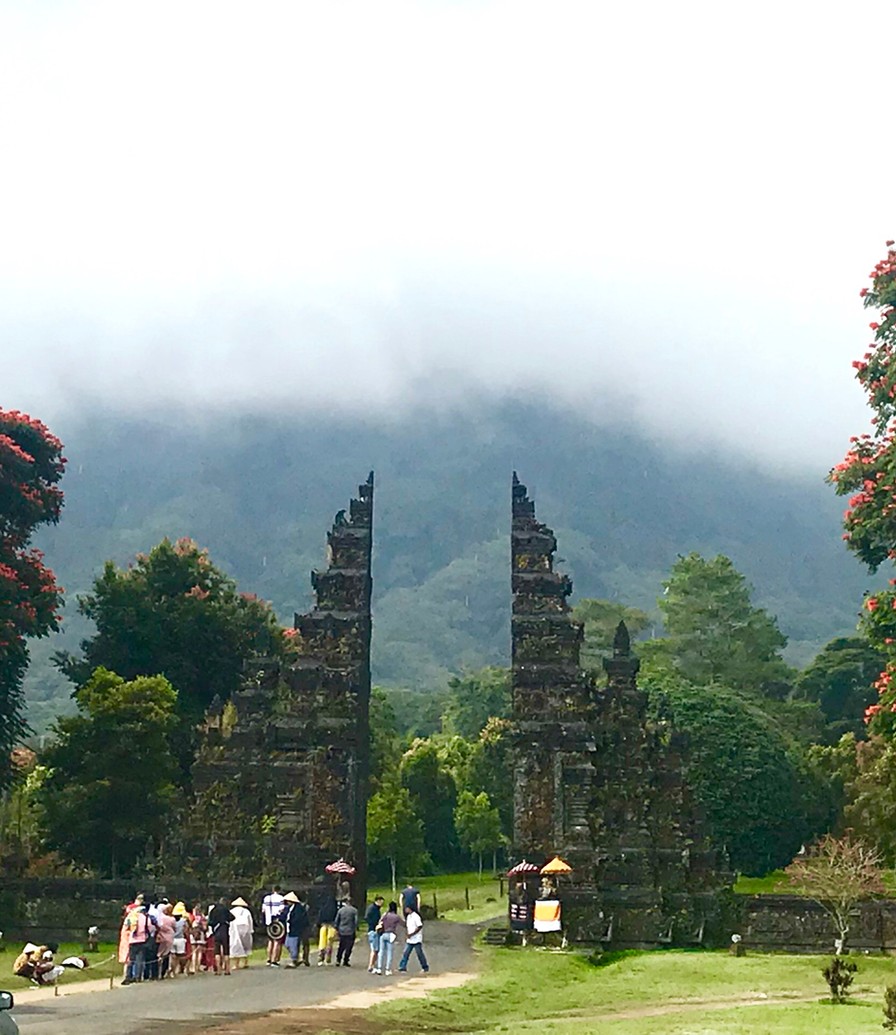 2 timers kørsel – 40 km. fra Ubud (nåede vist at få skrevet, at trafikken var bedre end Sri Lanka en kende for hurtigt:-)) – det meste af vejen opad, og naturen omkring os skifter på forunderlig vis kilometer for kilometer. Temperaturen falder (meget) i takt med højden stiger, skyer trækker ind over land, og regnen melder sin ankomst.