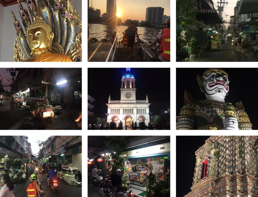 I den tidlige aftensol, med Jørgen dopet på pencillin og panodil, svingede alle 5 mand ud på 5,5 timers guidet cykeltur gennem Bangkoks små gader, gyder og markeder. Når man oplever nye steder, er der altid oplevelser, som får en ganske særlig plads i hjertet. Dem der bliver en del af hele det minde-kartotek, der trækkes frem ved middagsbordet en aften i januar, når alt er gråt og trist. Den her cykeltur bliver en af dem, der arkiveres lige dér – sammen med bl.a. Kuang-si vandfaldet i Laos, mødet med de portugisiske europamestre og Happy Sonni fra Hanoi. For sikke en tur.