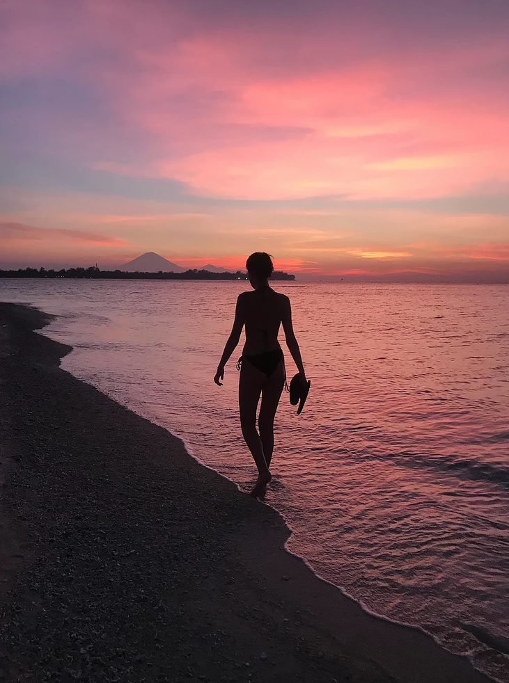På en lille ø som denne er det ganske særlige at man med få hundrede meters afstand kan opleve både solopgang og nedgang. Vi små de smukkeste solnedgange de første dage vi var der, og nordvest spidsen må blive favoritten. Her går solen ned i vandet lige og i baggrunden kan man på en klar dag se vulkanen på Bali.