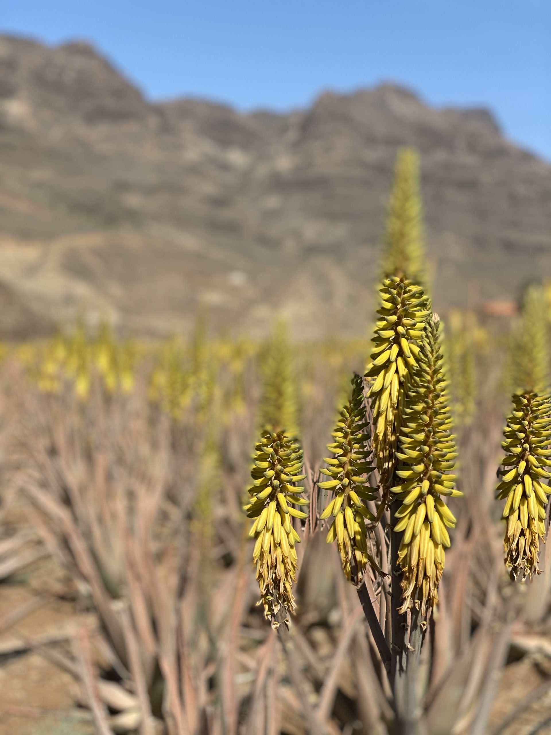 Overalt langs ruten vokser flotte spiselige kaktus. Og langs ruten findes også et væld af smukke Aloe Vera marker, som blomster gule og smukke i februar.