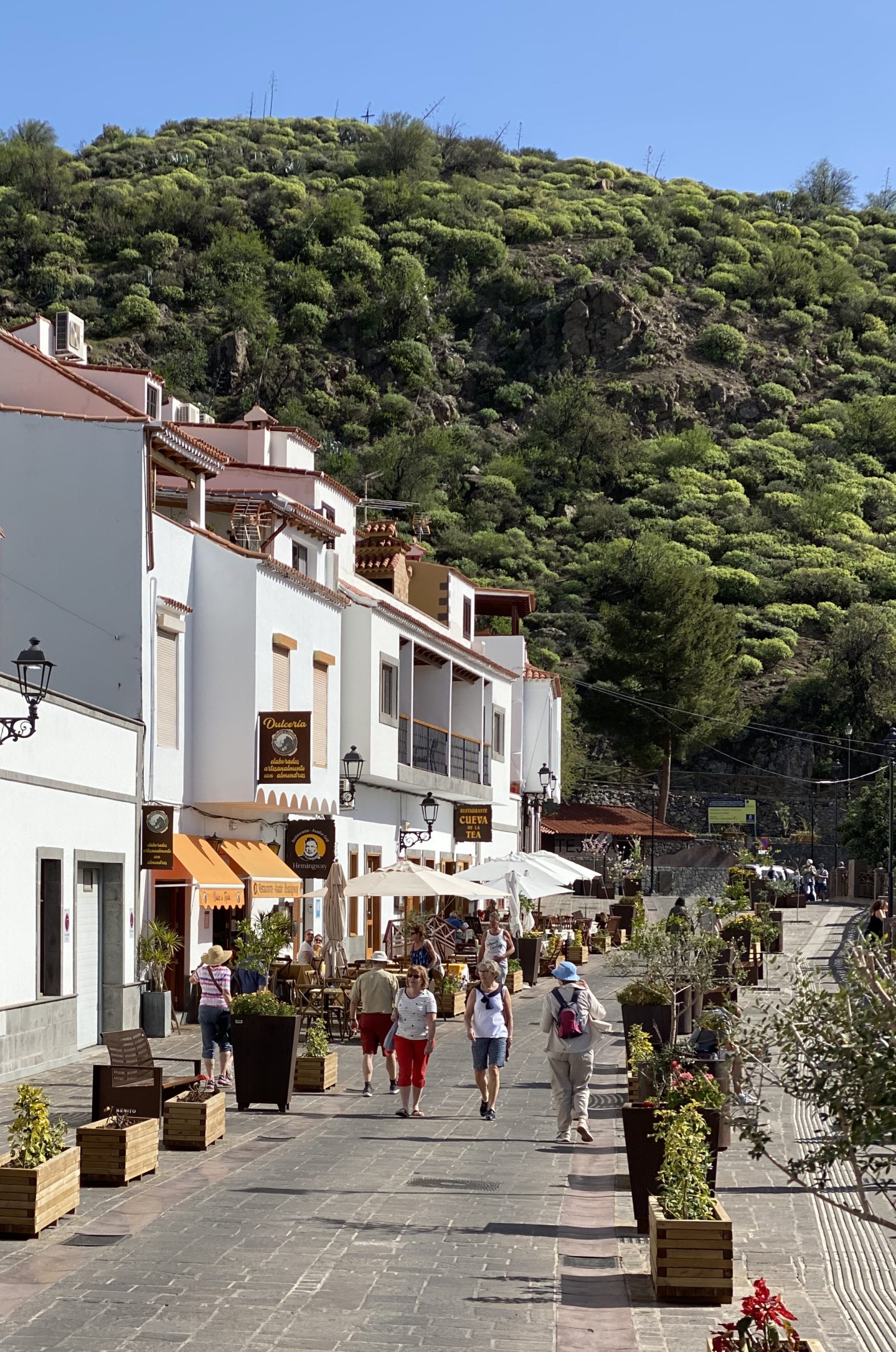 Her efter går turen videre mod området San Fernando, hvorfra du finder opkørslen til bjergene. Denne rute tager dig hele vejen gennem den smukke og frodige Fatagadal. Den lille by Fataga er absolut et besøg værd til en kop formiddagskaffe eller dagens første tapas. Stedet med den bedste udsigt fra gårdhaven er El Albaricoque på hovedgaden. Den ser ikke ud af meget udefra. Men gårdhaven byder på den smukkeste udsigt.