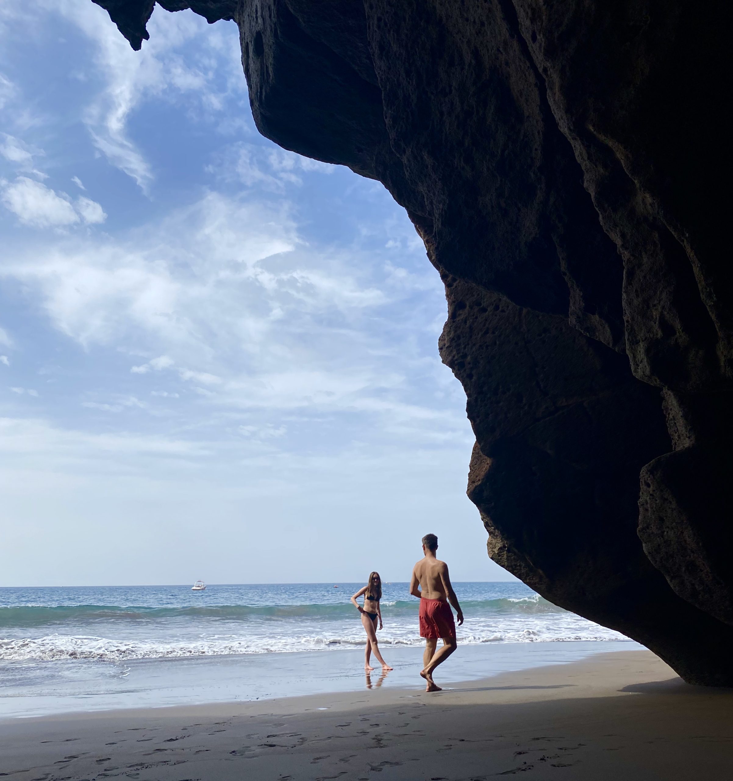 Langs kysten efter Puerto Rico og ud mod Puerto de Mogan ligger et par mindre bugter, der også er bygget op med hoteller i klipperne. Disse er lidt mindre. Vi boede i Taurito bugten lige inden Puerto de Mogan. En lille bugt, med den fineste strand og en smuk grotte, som du kun finder, hvis du går helt til venstre for enden af stranden.