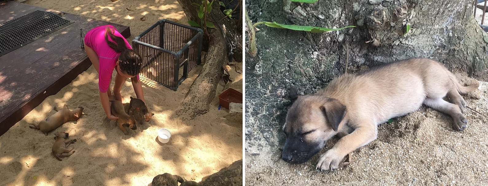 De har fodret dem med mælk (som koster en krig i Sri Lanka), og sørget for at de små fik mælk fra moderen, når hun kom forbi. Moren har de også har passet med mad og mælk. Inden vi rejste talte vi med en canadisk pige, der arbejder som yogalærer dernede. Hun lovede at kigge til dem, og det samme gjorde tjeneren på restauranten, hvor de bor. Så de små søde væsner skal nok klare sig.