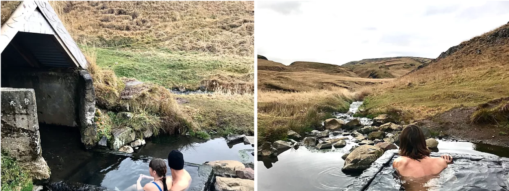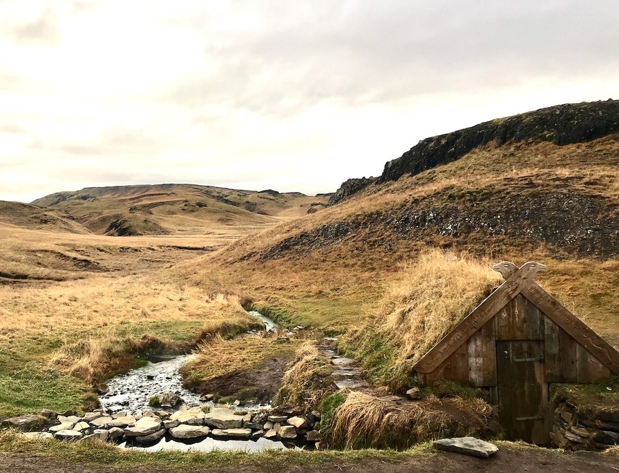 På en lillebille plet midt i et storslået landskab, kun en afstikker fra Ringvej 1 på vej mod den lille by Fludir, finder du et lille stykke magi. Island er kendt for sine geometiske bade og naturligt opvarmede pools og alle byer med respekt for sig selv, byder også på en svømmehal og udendørs pool. En kort lille gåtur over en bakketop og balancegang på et par brædder over lille å, bringer dig til den fineste hytte med græstag. Træhytten gør det ud for omklædningsrum, og her er det ellers bare at dyppe kroppen i det lune vand i det lille kilde og de små byggede bassiner.