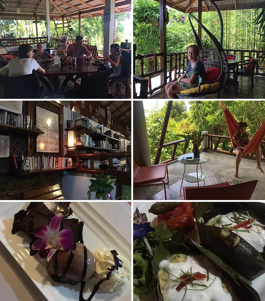Absolut det lækreste mad vi har fået på turen til dato, så de fleste måltider indtages på hotellet. Valerie (den franske ejer)’s mand Oon er virkelig en god kok og restauranten er også fyldt hver aften. Også af gæster udefra. Priserne er kun lidt højere end på de lokale steder, der ligger i nærheden. Her er kælet for alle deltaljer og indretningen er på alle måder meget anderledes end de typiske bambushytter. Lyst og lækkert og med syn på selv de mindste detaljer. Topkarakter herfra!!!!!