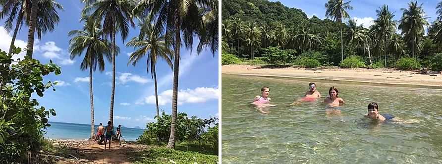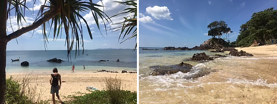 Vi nappede næsten samtlige strande fra Coconut Beach i nord til Freedom Beach helt på sydspidsen af øen. Alle strande var virkelig skønne. Men det lækreste vand, vi endnu har badet i. Postkort smukke. Og også alle bedre end den ved vores eget hotel. Lækre gule sandstrande med det klareste og meget varme vand. Der er mange klipper og store sten, hvilket dog ikke gør noget ift. at bade og hvor tidevandet drillede lidt på Noi, så spiller det ikke den store rolle for bademulighederne på denne ø. Selvom tidevandet er ligeså udpræget her.