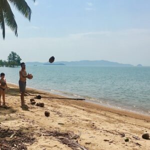 På øens østside er det primært mangrove og ikke sandstrand, mens vestsiden byder på den ene fine strand efter den anden. Ikke crazy bounty strand med kridhvidt sand og turkisfarvet krystalklart vand, men smukke gule strande med vejene palmer, skyggepladser, hængekøjer og gynger. Nedfaldne kokosnødder gør det superfint ud for et petanque spil ligesom muslingeskaller og sten fint kan bruges til at spille en omgang strand X-og-Bolle. Strandende er øde, og ofte har man dem helt for sig selv. Naturen her er virkelig storslået. Særligt på vestsiden ved Pasai Beach er der et skue udover en masse små øer, som er helt fantastisk (se øverste billede). Desværre har eftermiddagene været meget overskyede, så vi har endnu en solnedgang tilgode.