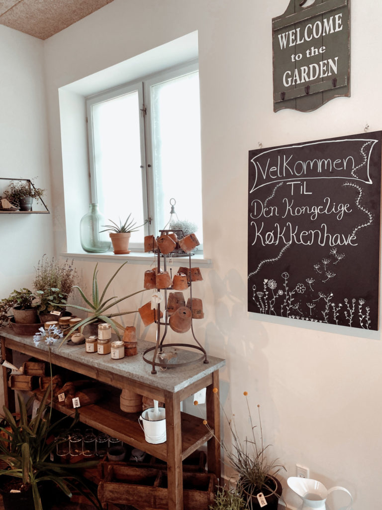 I forbindelse med haven ligger en fin cafe og lille gårdbutik, hvor man har mulighed for at købe ting fra køkkenhaven med hjem.