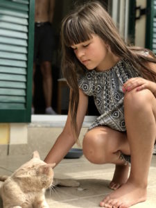 Stranden er en stenstrand, men hvad gør det, når man kan ligge på en ponton og springe i det klare vand eller kravle i skyggen under et smukt gammel træ, når varmen blir’ for meget? I det hele taget har vi en forkærlighed for ponton’er i vores familie. Skønt dybt vand at hoppe på hovedet i, og det klareste saltvand, gør det ud for det perfekte kompromis mellem pool og strand. Vi bor i dette område, så det er her vi ofte holder til, når ikke vi drager ud og udforsker øens små byer og strande.
