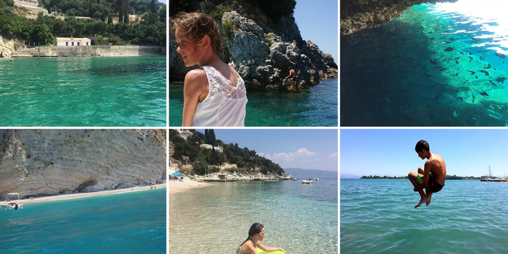 For 4 år siden rejste vi for første gang til Korfu som er den nordligste ø i øgruppen de Ioniske øer. Den ligger nær ved fastlandet tæt på grænsen til Albanien og ikke langt fra Italien på den anden side. Øen er ufattelig smuk og byder på noget af det smukkeste vand, jeg nogensinde har set i Grækenland (Otzias beach på Kea er nok den der kommer nærmest). Her finder man strande i massevis. Både de små fine øde strande, men også de lange brede mere turistede strande. Vi lejede en lille speedbåd en af dagene, og tog os ud til smukke klippestrande, der kun kan tilgås fra vandsiden. Alle med krystalklart vand i alle nuancer af turkis, der i den grad kan hamle op med Asiens hvide sand og smukke vand.