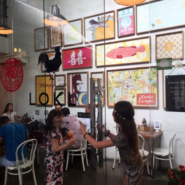 Shopping malls findes overalt i byen. Vi valgte et par stykker ud, som vi kiggede lidt nærmere på, og børnene fik købt et par småting under nøje instruktion om, at alt man køber, skal man selv finde plads tilJ. På vej ud blev vi stoppet af en sød dame, der gerne ville se vores bon’er og på baggrund af det brugte beløb, fik vi et givent antal chancer for at dreje på et lykkehjul og vinde nogle præmier. Og ligeder var det at karmaloven ramte os på den hårde måde. Selma vandt en ready-to-go detox juicekur med køletaske, juice, detox-vand og sunde snacks. De af jer der har fulgt med i vores seneste juicekur-detox-projekt, vil på nuværende tidspunkt nok grine jeres r… i laser. Nå, men der stod vi med grøntsagsjuicer ad libitum midt i Kuala Lumpur. Selma insisterede på juice-smagning med karaktergivning senere på dagen. Ingen af dem bestod testen, og måtte pænt lade livet gennem det malaysiske kloaksystem. Tro mig – end ikke vodka kunne ha’ reddet dem, og jeg har lovet mig selv aldrig mere at indtage grønsagsjuice med agurk i…føj! Men køletasken udgør det nu for en meget fin håndbaggage taske til Selma.