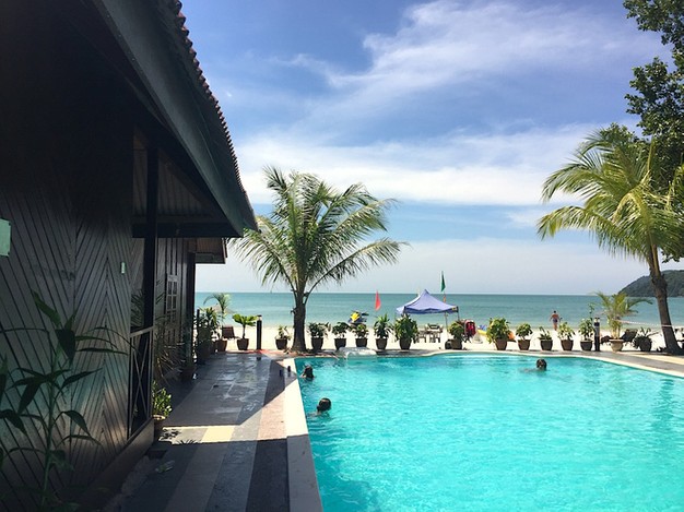 Vi har været her godt en uge, og bliver her til og med torsdag, hvor turen går til Georgetown på øen Penang, der ligger blot 35 minutters flyvetur herfra. Vi har boet et par steder, førend vi for nogle dage siden endelig fik plads på en sand perle af et lowbudget hotel, der ligger lige midt på en af øens bedste strande.