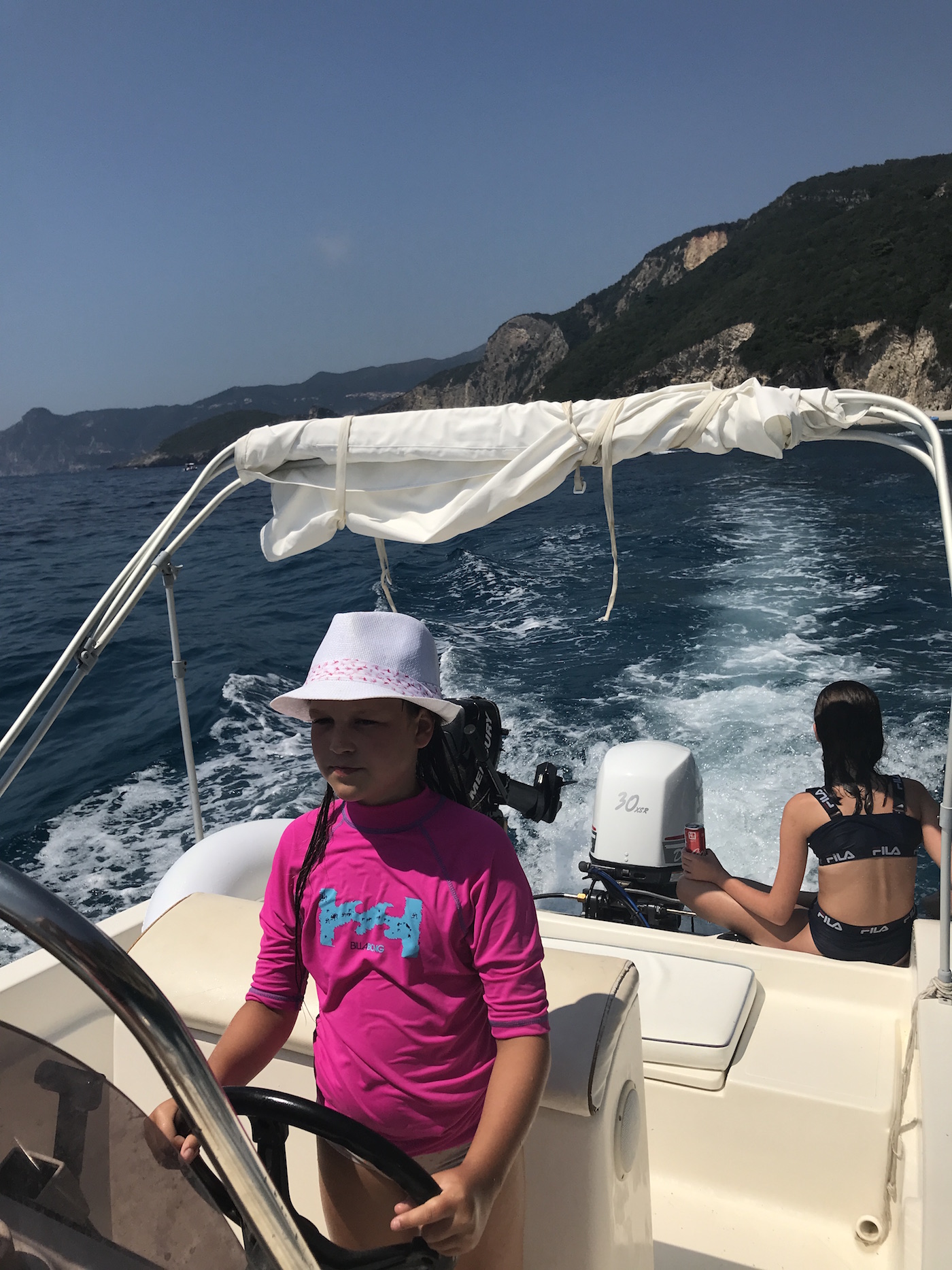 I går lejede vi en lille båd, hvor vi selv skulle sejle. Vi sejlede rundt på Korfu. jeg fik faktisk lov til at styre båden helt selv, det var så sjovt. Vi havde båden i 4 timer. Vi kunne godt få tiden til at gå med et eller andet. Vi sejlede rundt til nogle strande som man kun kan komme hen til vis man sejlede.