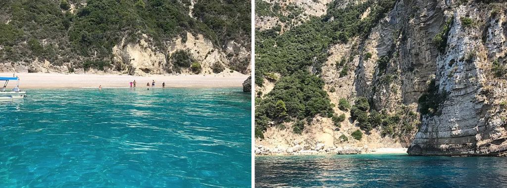 Vi hoppede i fra båden af, og kom op med en trappe der var på båden. På et tidspunkt var der en flot strand, så der svømmede mig, min søster og mor ud mens drengene var på båden og ventede. Der var vild langt ned til bunden, så vi svømmede hurtigt in d til stranden. Vi havde dykkerbriller med så vi kunne se fisk. Jeg så mange både store og små, og vi fandt flotte sten. Så var det snart slut, vi havde ikke så meget tid tilbage så vi sejlede stille og roligt tilbage til havnen.