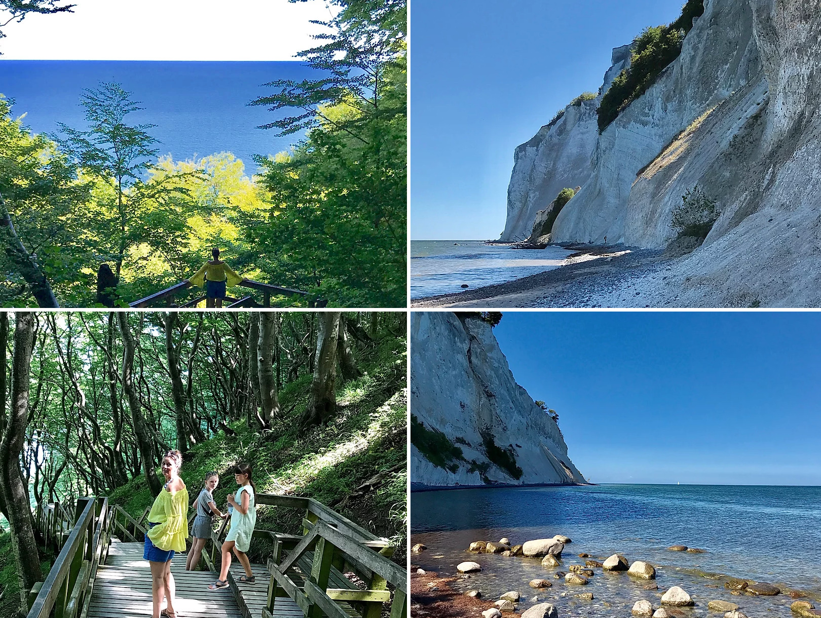 Videre østover, gennem et smukt solbeskinnet dansk sommerlandskab ramte vi Møns Klint sidst på dagen. Selvom solen for længst var sejlet bagom klipperne og dermed efterlod dem i skygge, var der helt utrolig smukt. Ca. 500 trin ned hvor man flere gange må gøre stop; på vej ned fordi man bliver bjergtaget af udsigten. Og på vej op, fordi man liiiige skal have vejret:-)