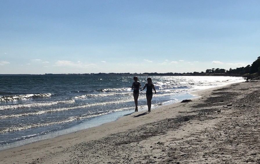 Vi parkerede bilen, og en smule skuffede over stenstrandens beskaffenhed, startede vi en vandring mod højre. Det skulle vise sig slet ikke at være en dårlig ide. 100 meter længere hen ad stranden var den skønneste sandstrand, hvor alle blev frisket op inden turen atter gik mod København, med trætte børn på bagsædet. Vi lader billederne tale for sig selv.