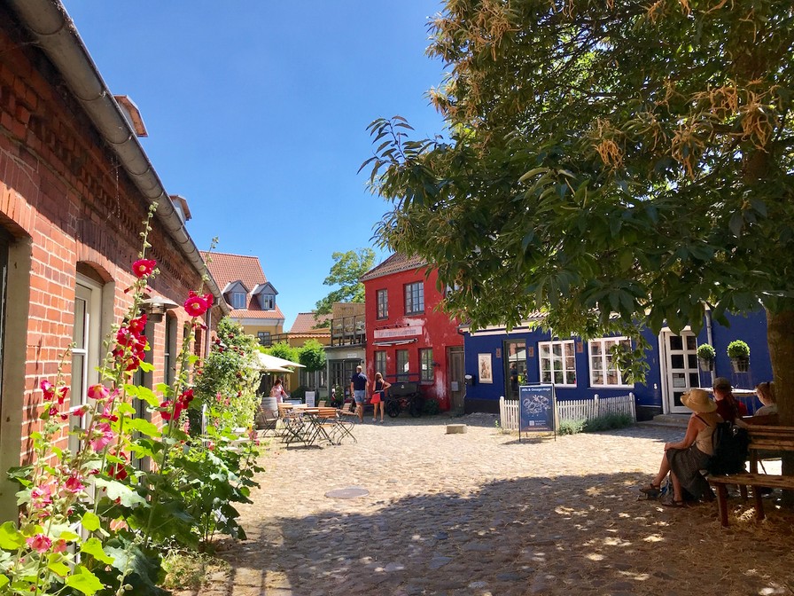 Herfra gik turen videre til hovedbyen Stege, hvor vi fik spiste rigtig god frokost hos “Davids” – som vi virkelig god. Byen er den største på øen og byder på en del butikker, restauranter og cafeer. Gaderne er små og hyggelige, farverne er mange og stokroserne endnu flere. Den sender mine tanker i retning af Holbæk og Nykøbing, hvor jeg tilbragte rigtig mange somre som barn. I Stege kan du bl.a. besøge Møns Bryghus.