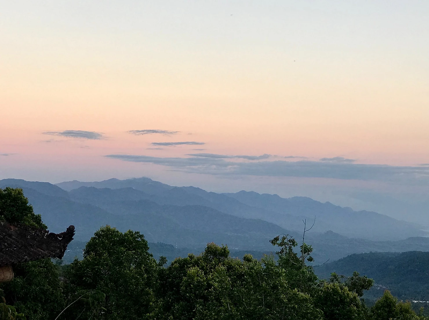 Vi er i Munduk – på toppen af Bali – helt ind i højlandet. Jeg vågner ved at lyset langsomt står ind ad alle vinduer og sprækker i vores træhytte. Har bevidst ladet alle gardiner været trukket fra, i håb om at blive vækket til en smuk morgen med udsigt til Javas bjerge. Alt ånder fred og ro. Klokken er syv, og udsigten skuffer ikke. Den er mildest talt ”breath taking”. Jeg overvejer at smutte op i hotellets have med kameraet, men beslutter mig for at kravle tilbage i seng.