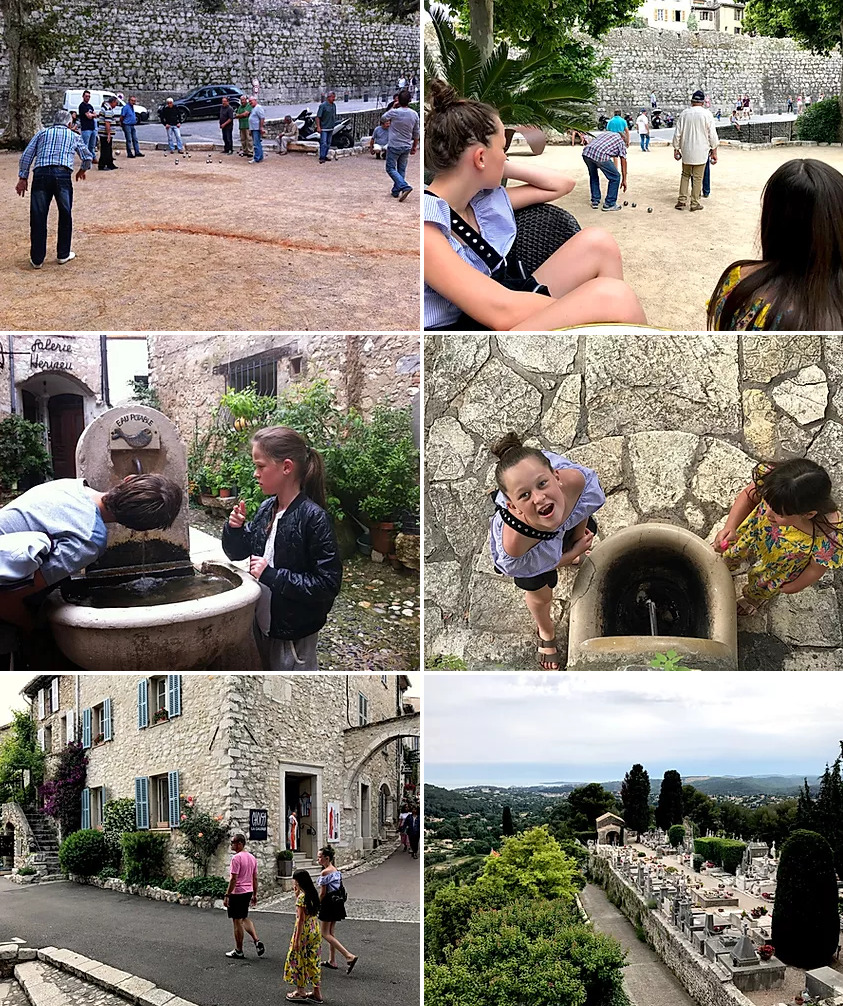 Bare 3 km fra hvor vi bor – og dermed i gåafstand – ligger en af vores ubetingede favoritter: Saint Paul. Byen er en typisk middelalderby og lidt af et trækplaster. Men selvom den tiltrækker et hav af turister, er stemningen virkelig fin og rolig. Byen, som er omkranset af en gammel bymur, er virkelig smuk og ganske særlig. Den har gennem tiderne tiltrukket kendte og kunstnere, og danner rammen om en del gallerier med moderne kunst. Og på kirkegården, som ligger for enden af ”hovedgaden” ligger selveste Marc Chagall begravet. Alene turen gennem byen er en oplevelse i sig selv. Gaderne er belagt med smukke sten i alle mulige mønstre (pas på; de er møgglatte i og efter regnvejr!) og der findes et utal af vandposter til stor fornøjelse for børnene.