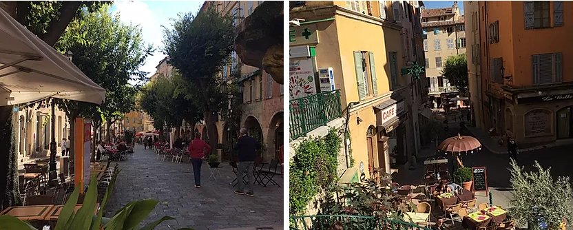 Selve Nice by er selvfølgelig på listen her. Den er uundgåelig. Særligt området omkring Place Masséna – er et must. Jeg er særlig vild med farverne og de smukke geografiske mønstre, der giver pladsen sit særkende. Moderne sporvogne der fletter sig ind og ud gennem menneskemængderne, åbne pladser og små hyggelige gader. Her får man virkelig følelsen af storby og med et utal af butikker lige fra souvenirbutikker til det dyreste designerbrands er der rig mulighed for shopping. Bliver det for varmt kan man tage en forfriskende tur gennem springvandsparken nær Place Masséna.