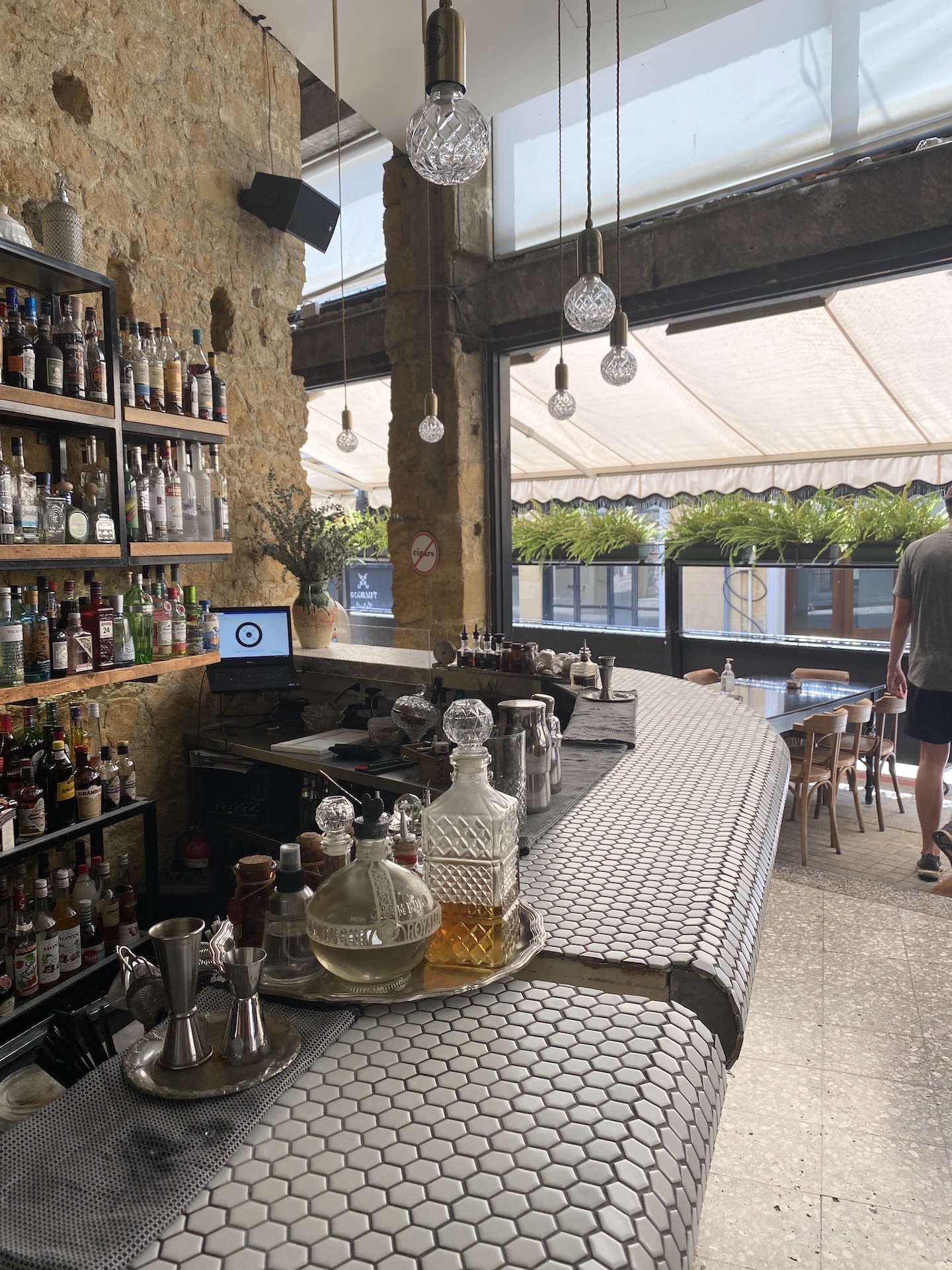 Jeg vil tro, det er et rimelig hypet sted, hvis ikke lige det er Corona-tid og byen er tom for turister, men der er en del borde, både inde og ude.