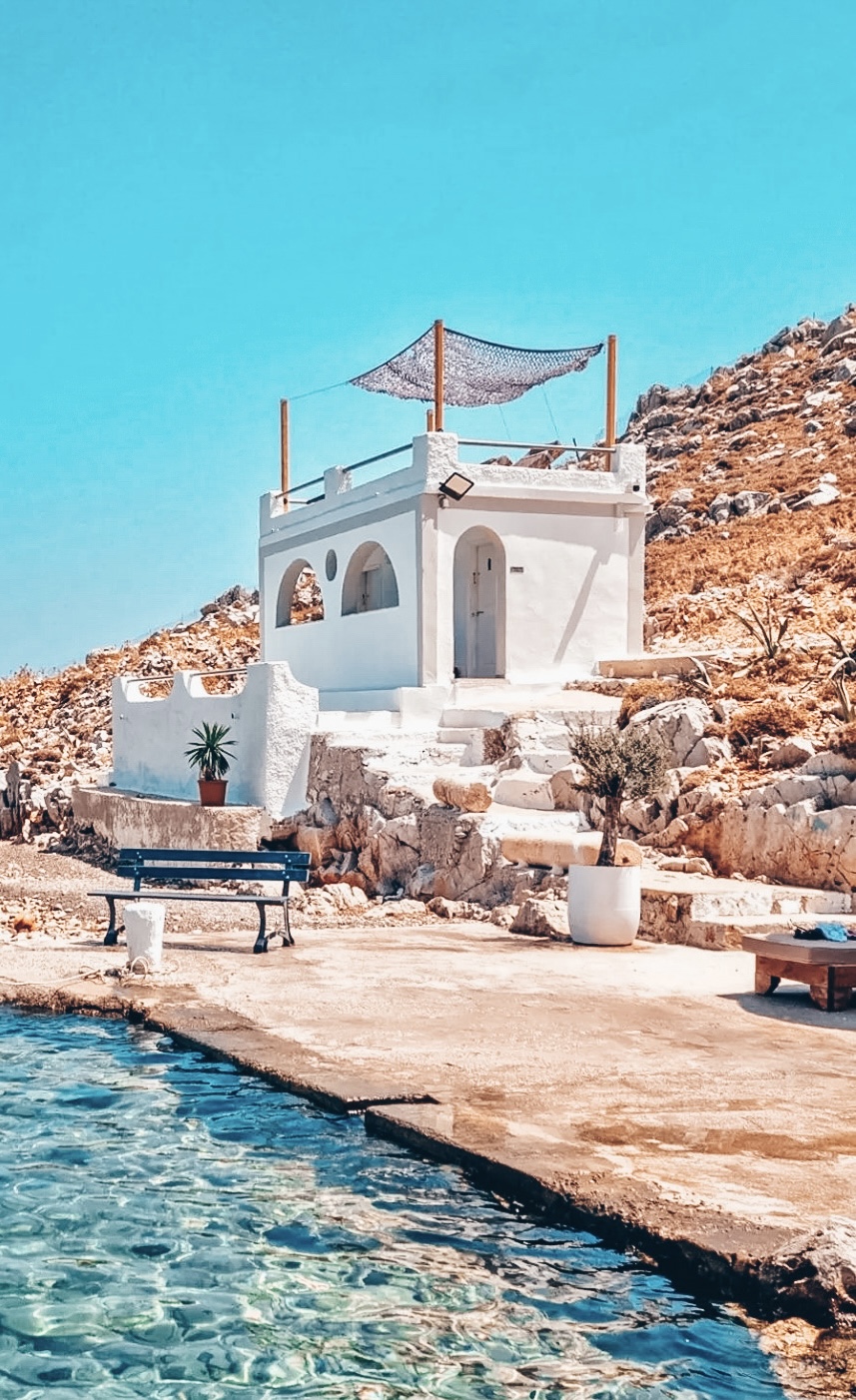 Her skal vi hike, sole og bade og nyde livet på kajen sammen med de lokale (særligt når dagsturisterne fra Rhodos rejser sejler hjem). Her skal vi bo i den lille by Pedi.