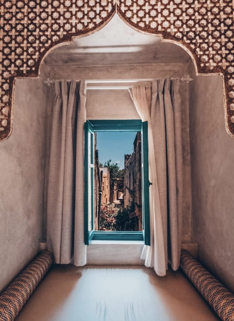 Her skal vi bo – arh men se lige – det ser jo så fint ud! Det minder mig om Marrakech – og jeg må indrømme at indretningen og den helt magiske roof top har haft ret stor indflydelse på valg af hotel her.