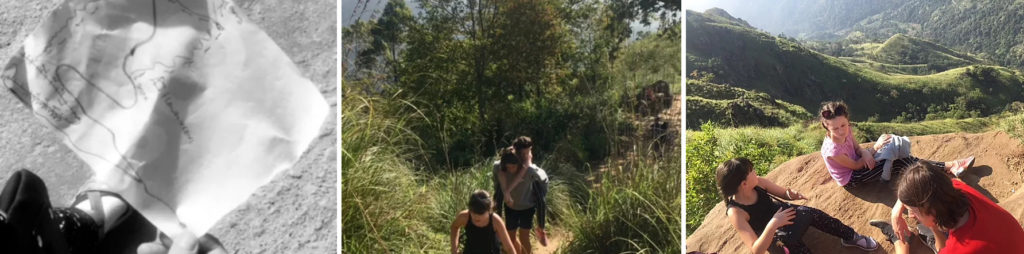 Trekkingture til Ella Rock og Little Adams Peak er blandt de mest kendte ruter i området. Førstnævnte tager det meste af en dag, hvilket vi synes var for meget for børnene, så valget faldt fra vores side på den kortere og mindre krævende tur til Little Adams Peak. Vores vært lavede det fineste håndegnede kort og forlængede ruten med nogle kilometer, så vi også fik fornøjelse af at vandre på togskinnerne over Nine Arch Bridge. I alt ca. 6 kilometer som tog os de smukkeste steder hen – i alt tog det godt og vel 4 timer med diverse stop og pauser og bestigninger af trapper, så ferietempoet må siges at være ved at være helt i bund.