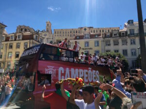 Husk at skrue op for lyden for at få hele stemningen med!:-) Hvor heldig har man lov at være??? Portugal vinder EM, mens vi er i landet og bliver modtaget som de mestre de er lige der, hvor vi befinder