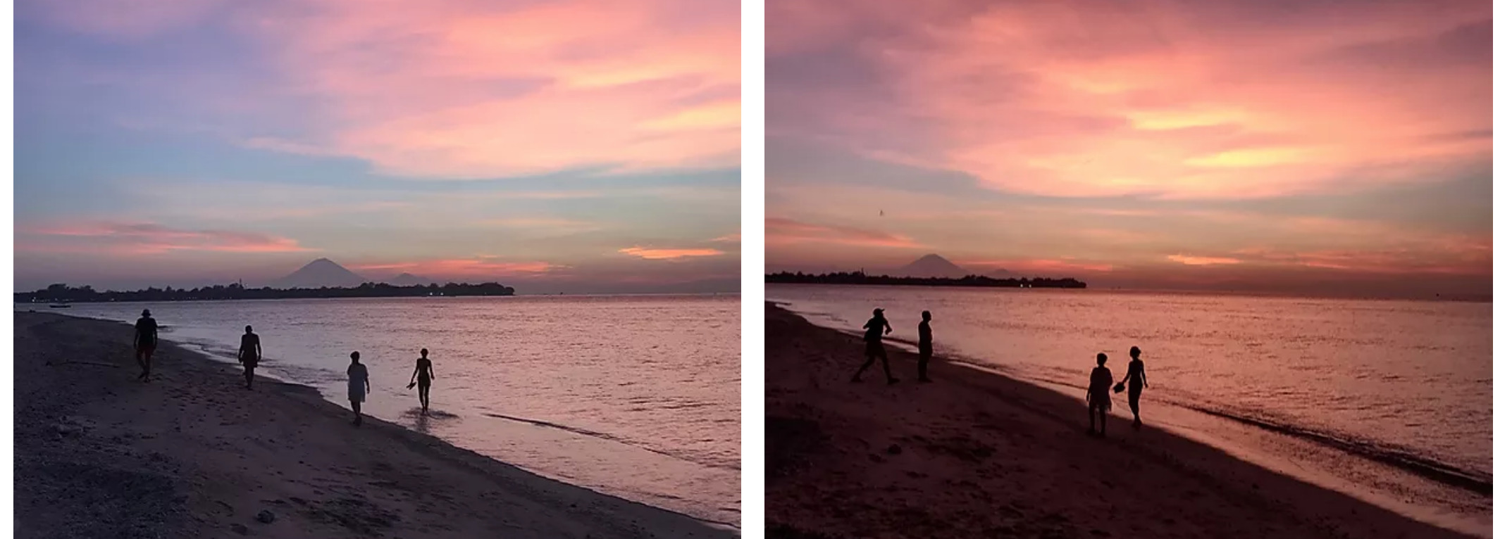 Smukkeste farveskift med få minutters mellemrum. I baggrunden ses vulkanen Mont Agung på Bali.