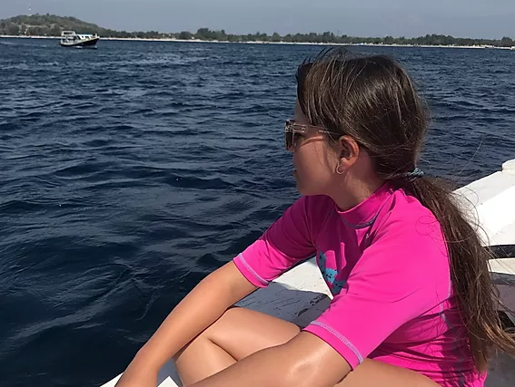 På Gili Air var vi som sagt i tre dage. Gili Air er den mindste ø, af de tre øer. Den første hele dag var vi på snorkel tur. Første stop på turen var et stop hvor der var skildpadder og fisk. Men der kom jeg ikke i. Jeg så nogle små skildpadder oppe fra båden af. Senere snorklede jeg også fra båden og så en masse flotte fisk. Vi slappede meget af og spiste god mad. I kan jo gå ind og kigge på min storesøsters madanmeldelser, og se hvilke restauranter der er gode, vis du tog til Gili Air.