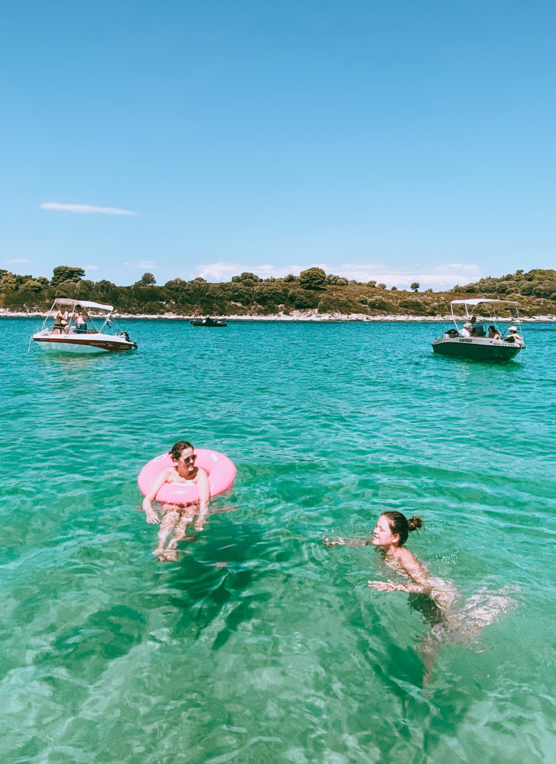 Vil du have de smukke strande helt for dig selv, skal du leje en båd og sejle hele vejen rundt om Diaporos Island ud for Vourvourou, hvor du både kan gå i land flere steder og bade fra både i vand som på billedet herunder.