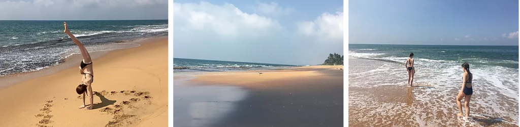 Stranden hvor vi bor, er smuk og ganske øde. Man kan dog ikke bade, men gåture og araberspring, kan de ikke tage fra os. Farverne her helt utrolig smukke og oprørt vand er nu også ofte mere fascinerende at skue end det stille.