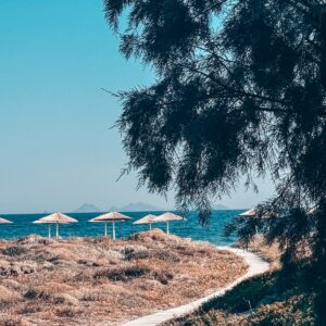 Meget af øen og særligt en del af de smukke strande, er kun fremkommelige fra vandsiden. Fra både Gialos og Pedi går der water taxis til fem forskellige strande.