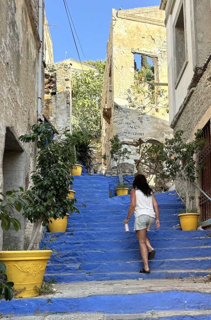 Fra byen kan du gå ca. 500 skridt op (og endnu flere videre til kirken) gennem de smukkeste gader. Op, op, op….så husk vand.