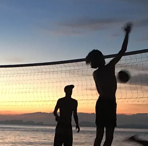 Solnedgang og Beahcvolley på Klong Dao stranden – være med eller kig på, mens solen danser i horisonten