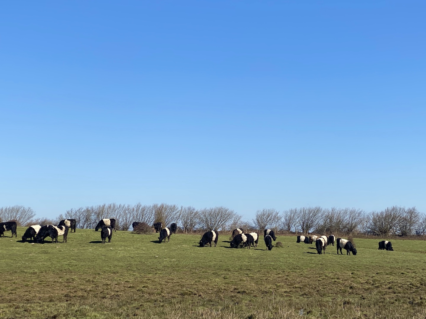 Her kommer du helt tæt på de sortbrogede kvæg, da denne del af ruten går gennem deres græsningsområde – husk at lukke lågerne:-)